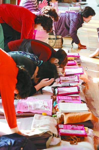 10月28日,韩国2013学年度高考进入11天倒计时。28日下午,在首尔曹溪寺举行的高考祈祷法会上,信徒们为即将参加高考的子女们虔诚祈福。