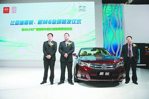 2012年11月22日,第十届广州车展正式拉开帷幕,比亚迪携两款全球首发车型思锐、新M6和五大技术“TID动力总成、DMⅡ代动力系统、双向逆变充放电技术、智能手表钥匙、遥控驾驶智能钥匙”以超强阵容强势出击广州车展。在1140平方米的展厅内,展现出比亚迪“技术·品质·责任”的核心主题。此外,S6、速锐、G6等多款重磅车型也亮相本次车展,与观众进行近距离接触。