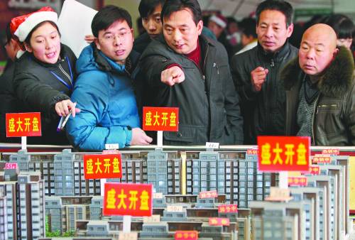 12月29日,河南省滑县道口镇,农民在县城某房地产公司选购楼房现场。滑县积极探索新型城镇化之路,积极开展土地流转和新型农村社区建设工作。不再种地的农民纷纷搬进新型农村社区或在县城买房,过上了“带土地的市民”新生活。CFP供图