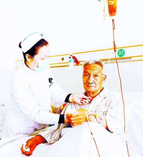 1月18日,在河北省唐县白求恩纪念医院,护士对一位患者进行护理。
