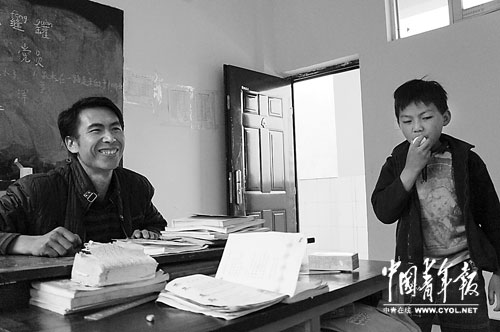 两个孩子流利地背下来,他微笑着点头赞许。最后一个孩子背诵得有点磕磕巴巴,这名小学老师不再微笑,他站在讲桌前严肃地说:“好好读书,你们才能改变命运。”