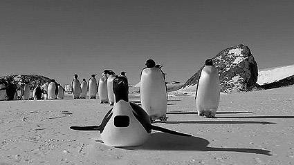 但即使有精心的伪装和炫目的高科技保驾护航,这些企鹅特工们的命运依然难测。在福克兰群岛,一只长腿秃鹰俯冲而来,拨弄几下后一把抓起那颗无人照看的企鹅蛋。在秃鹰的利爪下,蛋里的摄像机不知要遭受怎样的厄运。