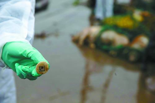 3月13日,上海金山廊下镇中联村,防疫人员在无公害处理死猪。近期,廊下镇已处理了400头死猪。