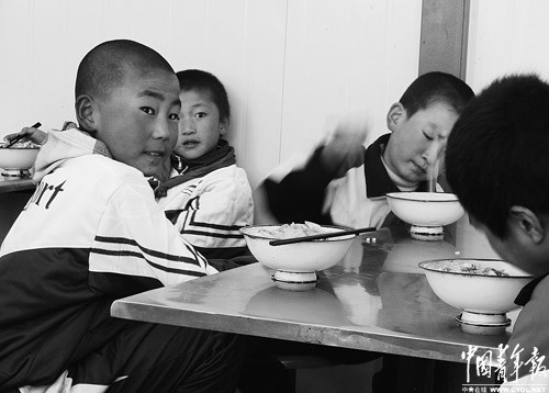 西部孩子的快乐午餐时光。在甘肃省定西市安定区巉口镇常川村的天津师范大学希望学校,孩子们在校吃饭的问题已经解决了。这些“西北娃”背着馍馍上学的历史一去不返。该校建起了学生厨房,据校长白喜彦介绍,学生每天早晨到校后享受国家免费“营养餐”,午餐也在学校吃,放心、实惠。