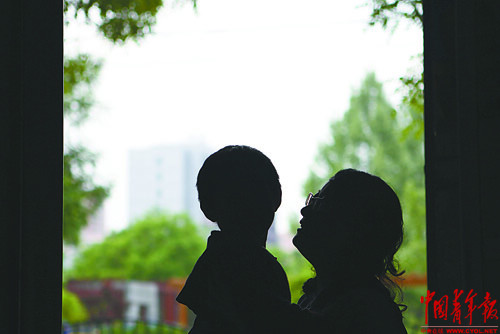 5月17日,玩累了的儿子坐在常静腿上休息一会儿。常静总是责备自己不能和孩子跑跑跳跳。