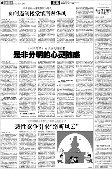 他指出,具体来说,就是要通过更规范和严苛的预算管理,切断地方政府违规筹集资金建设楼堂馆所的路径。这不仅意味着,要将预算内的项目资金管好,还意味着,要将长期处于灰色地带的“预算外资金”也关进监管的笼子。与此同时,还应加强媒体和社会公众对政府的监督,加大纪检监察部门对违建楼堂馆所的问责力度。