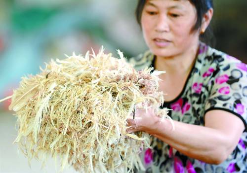 江西冰达羽绒有限公司一名职工在清理仅存的鸭毛(5月21日摄)。
