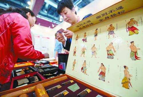 5月28日,观众在第二届京交会展馆的中医药展区参观。