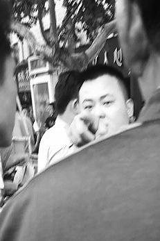 小吴向中国青年报记者提供的现场手机视频截图。图中这名方脸的城管队员发现被小吴拍摄,指着他的鼻子喊:“你给我删了!”