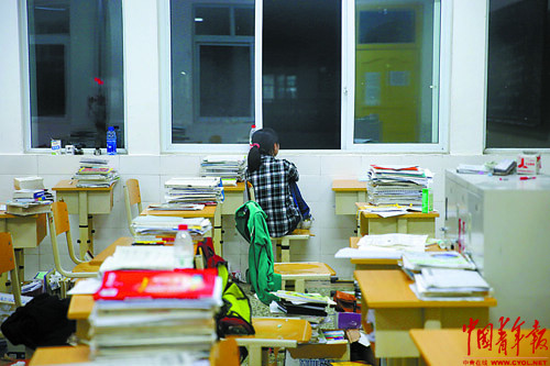 周末晚上,宝兴中学高三年级的一间教室里,一位上晚自习的女生独坐在窗边。