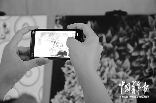 6月24日,复旦大学纳米艺术展开幕,一名观众在用手机拍照。本报记者 周凯摄