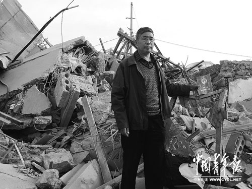 每晚睡觉前,青岛农民钟兆祥都会透过后窗,看一眼自家老房的废墟,然后一声叹息。