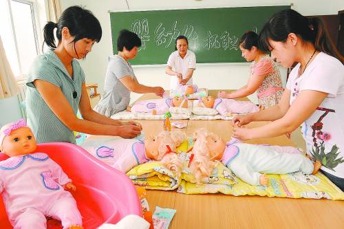 北京妇女儿童社会服务中心的老师在为学员进行家庭儿童护理培训(摄于6月26日)。该中心的前身叫北京三八服务中心,是全国第一家家政服务中心,目前已培养全国20多万妇女为京城百万家庭从事家政服务。据了解,北京市妇女儿童社会服务中心,为首都妇女儿童提供综合维权、创业就业、教育培训、家庭教育、文化体育、家政信息、婚姻家庭、帮扶救助等八项综合性服务,成为妇联组织加强社会服务的重要载体和依托,并逐步成为全国广大妇女儿童信赖和热爱的“温暖之家”“幸福之家”。新华社记者 何俊昌摄