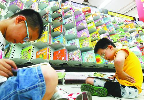 8月7日,上海市凯旋路上的一家连锁书店成为孩子们“孵空调”的最佳场所,一些学生们离去时都会选购部分图书。近期,上海餐饮市场上一些老字号点心店仅冷面就日销千份,空调、风扇畅销,冷饮和熟食成为消费者夏日最爱。新华社记者 陈飞摄