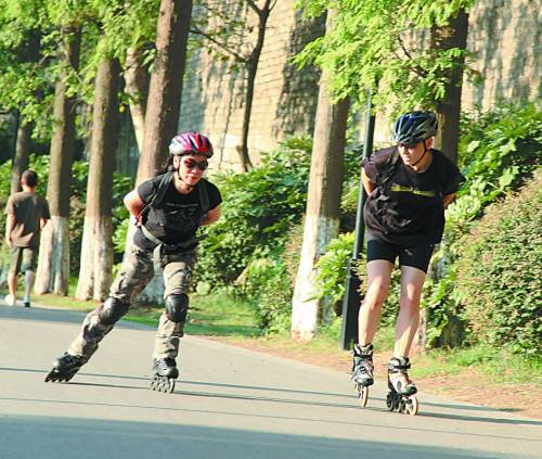早晨的湖畔,大爷们在读报、放风筝、舞剑、打太极。大妈们在练字、唱戏、悠闲的散着步。有时,听得一阵呼呼风声从身边刮过,那是轮滑少年们结伴刷着街。不时遇见一对父子,爸爸带着儿子一起围湖跑圈。
