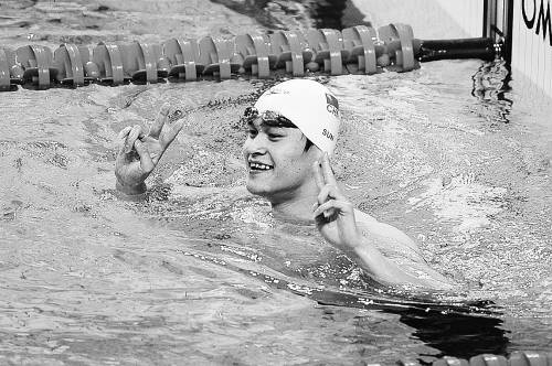 9月11日,浙江选手孙杨夺得男子1500米自由泳比赛的冠军。