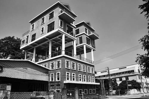 广东省东莞市石碣镇和睦街,在一栋高三层的厂房楼顶上,由十几根水泥柱子“撑起”了两栋“空中别墅”。据了解,两栋“空中别墅”已存在两年之久。