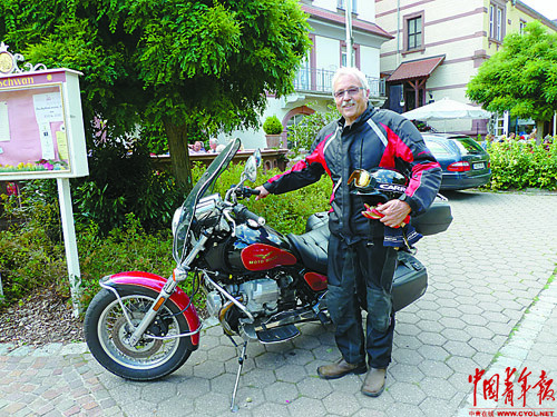 十几分钟后,一骑摩托极速飙过我们饭馆的门口,忽然又戛然刹住。再一晃,下来一个一身哈雷皮装、身高1.9米的头盔男。海娜介绍,“这是我老公”。我们在座的每一位女子都咽了口唾沫,很难相信,老先生已经72岁了。