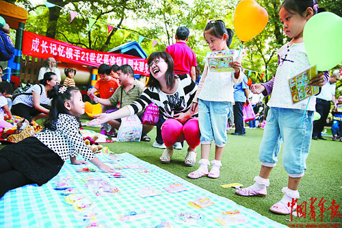 9月6日,一场义卖活动在北京一所幼儿园举行,小朋友们将自己的玩具、书籍、服装、绘画作品等摆出来练摊,所得收入全部捐献给北京一家孤儿救助机构。