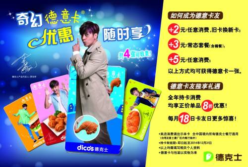 2013年版德克士“奇幻德意卡”闪耀登场,共有四款罗志祥帅气造型,奇幻的效果,炫动的设计,款款让你爱不释手!