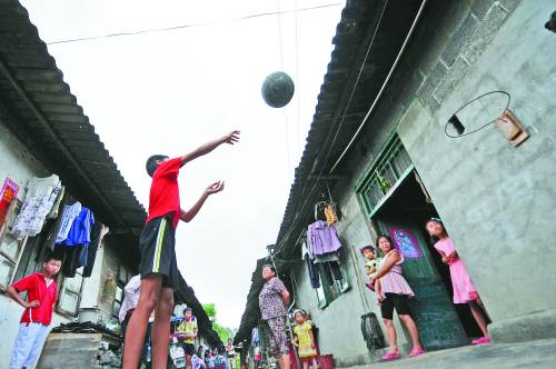 9岁的马林涛和父母一起居住在这里。他的篮球梦缘于父亲3年前在工地上捡来的一个篮球。父亲马社生在自家的墙上用铁丝钉了个球筐,从此,篮球成了马林涛生活的一部分。新华社记者 黄孝邦摄