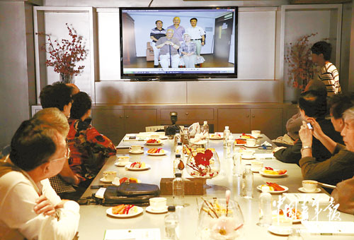 白发、老年斑以及日渐松动的牙齿同时在这些老人身上显示着岁月的力量。现场的投影仪里循环播放着当年的老照片,那里面都是一些值得追忆的好时光,许多人找到了他们第一天走进校园时的样子,另一些人则回想起这个曾经的男中头一回迎来女生时的热闹。年轻的陈小鲁也出现在黑白照片里面,那是在“文革”结束后,身着军装的他回到学校看望老师。
