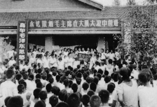1966年北京八中校领导被当做“黑帮分子”批斗的现场。(资料图片)