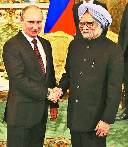 印度总理辛格(右)10月22日访华之前刚刚访问过俄罗斯。