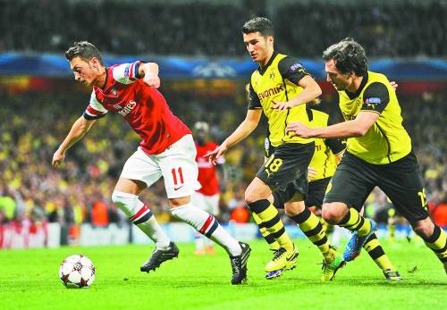10月23日,在欧冠小组赛第3轮比赛中,阿森纳队以1∶2不敌多特蒙德队。