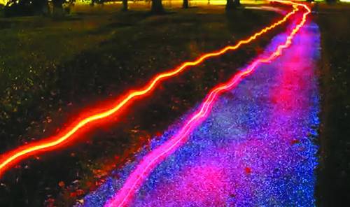 10月20日,英国剑桥,一条小径在黑夜会闪闪发光,是世界第一条发光的小路。这条位于剑桥地区的人行道上铺设了紫外线粒子,在白天的时候吸收阳光能量,在晚上释放。这条发光小路上铺设的发光粒子上面还涂了一层保护膜。这种技术有望在未来某一天替代路灯,成为更加便宜、更加有效利用能源的取亮方式。