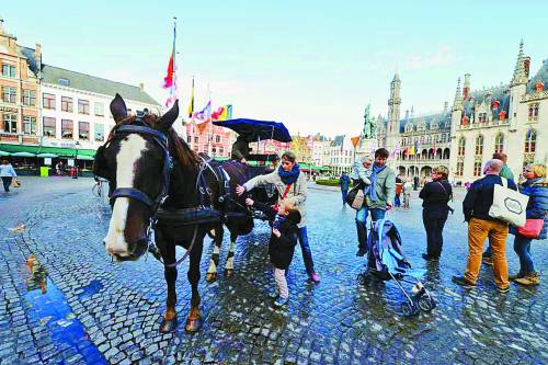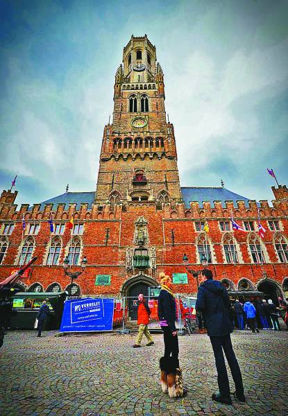 圣母教堂的钟楼是最高的,但依我看却不是最美的。要看最美的,要去几百米开外的布鲁日集市广场。这座建于1240年、高83米的钟楼,是布鲁日的标志性建筑。如果不惜力气,沿着366级台阶攀上钟楼顶部,布鲁日的景致会一览无余。在电影《在布鲁日》中,这座钟楼是不折不扣的“风景主角”,有关它的镜头出现了一次又一次。拿电影中一位游客的话说:“这是必看景点。”