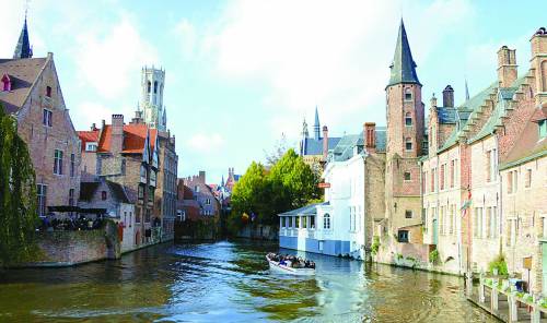 Brugge是桥的意思,由此可以想象,布鲁日的桥肯定少不了,共有50多座。有桥就有水,纵横交错四通八达的运河也是布鲁日的亮点,因此素有“小威尼斯”之称。如果看看电影《在布鲁日》中杀手乘舟畅游的情景,你或许会情不自禁地想到:“柔美的风光可以软化杀手的铁石心肠。”