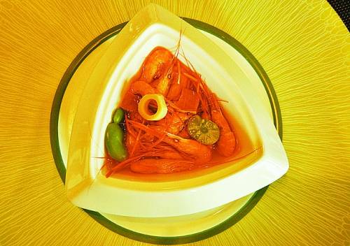 在江南,提到“吃”,人们的第一反应是“甜”,但是在宁波,“咸、鲜”则是主打。不过,作为本次品尝会的第一道菜,南苑钱湖虾的味道却是很淡的。