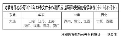 关于职业院校学生实习安全保障面临的严峻形势,教育部职成司副司长刘建同日前在全国职业院校学生实习责任保险制度建设研究会上曝出“猛料”说,“2012年,教育部办公厅印发《关于实施全国职业院校实习责任保险统保示范项目的通知》[2012年13号]至今,全国仍有13个省级单位(含计划单列市)没有作出回应、部署和安排,个别省份全国统保示范项目的投保人数还未实现零的突破(详见附表)。”