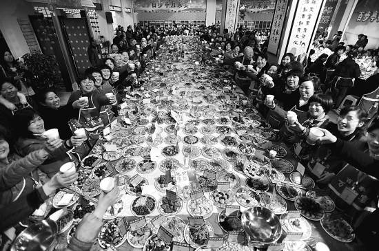 1月24日晚,武汉市百步亭社区举办第十四届“万家宴”。社区里近万个家庭,每家做一道菜,组成万道菜品。据了解,“万家宴”是百步亭社区组织的活动,从一开始的“百家宴”、“千家宴”到“万家宴”,已经连续举办了14年,成为该社区的传统。