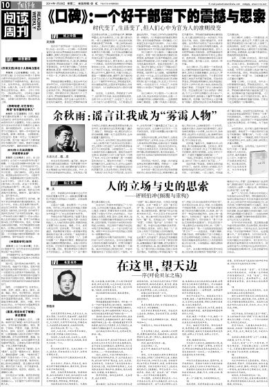 读着《口碑》,人们总说,书中这一切好像离现实遥远。罗贻斌这样的人,现在好像没有了,也许正是因为这种社会现状,罗贻斌的精神风貌才越发被凸显了出来,他的精神价值才越发值得珍重。《口碑》确实是一份不可拒收的礼物。因为,它所呈现出的精神价值富可敌城。它是当下社会需要的一份精神厚礼。