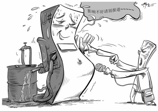 “柴油中水分超标40倍,这样的油你敢加吗?”近日,黑龙江省法学会消法研究会常务副会长王绪坤在微博上举报哈尔滨市尚志市苇河镇中石油加油站,称其油质严重不合格。中石油尚志销售分公司一位领导曾向记者表示:“此事对公司影响不好,希望你们不要报道。”(《新京报》1月27日)