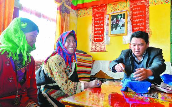 为有效解决西藏部分位置偏僻、交通不便的农牧地区取款难、转账结算不便等难题,2011年,中国农业银行西藏分行在日喀则、林芝、山南等地试点启动了农牧民财政补助资金代理业务。通过为农牧民免费办理“金穗惠农卡”,在农村布放POS机、自助服务终端等机具,将金融服务延伸到农牧区,方便农民在家门口随时取现和转账。据统计,截至2013年末,农行西藏分行设立助农取款服务点1400余个,乡镇覆盖率达90%。如今不少西藏农牧民变身“刷卡族”,在家门口用农行惠农卡取款、转账、购买日用百货。