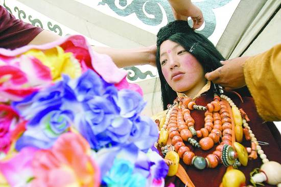 藏历四月初八是释迦牟尼的诞辰日。传说康定跑马山顶的五色海中有九条龙吐水为佛祖沐浴,故又称浴佛节。康定城区的居民要在这一天前往跑马山转山礼佛,经金刚寺、南无寺,最后沿子耳坡返回。久而久之,这个宗教节日和踏春等娱乐活动结合起来,形成了康定的特有节日。今年,四川省甘孜藏族自治州州政府邀请了甘孜州各地的文艺团体,在跑马山上举行了丰富多采的民族文艺活动。(大象文并摄)