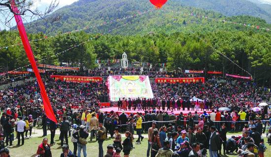 每年藏历四月初八,康定居民都集中在跑马山举行浴佛活动。