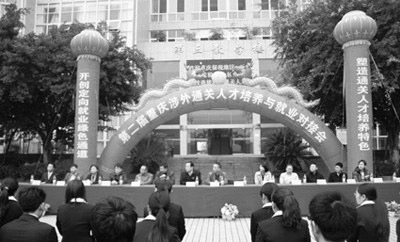 学校连续三届举办重庆涉外通关人才培养与就业对接会,得到了重庆海关、重庆保税港区、西永综合保税区相关领导的大力支持,每届都有40余家区内物流、报关、会展、金融等外贸企业来就业对接会揽才。在2013年11月举办的重庆第三届涉外通关人才合作培养与就业对接会上,重庆西永海关领导亲临招聘会现场,并指出:“我看到辖区这么多企业争着、抢着来学校招聘,证明学校的人才培养路子走对了,市场是检验学校就业好与坏的标准。”这种定向就业打通了人才出口通道,保障了校企合作的双赢。