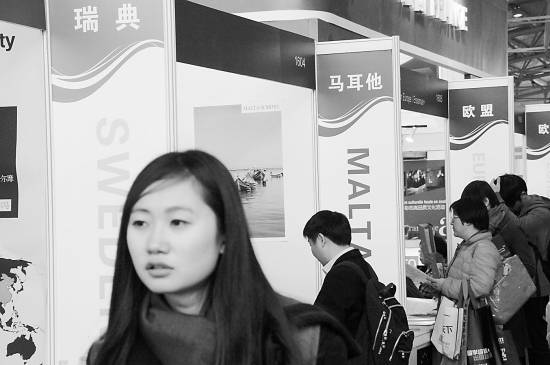 2014年3月15日,2014中国国际教育巡回展在北京开幕,欧洲留学展区人流密集。
