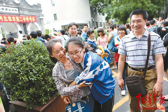 6月8日下午,高考最后一科考试结束。北京市第二中学考点门外,一名考生和家长相拥。据了解,6月9日北京市将启动高考阅卷工作。