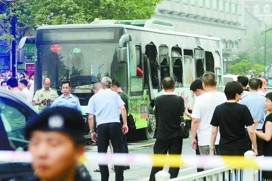 本报杭州7月5日电(记者董碧水)今天傍晚,行驶在杭州西湖附近的一辆公交车发生燃烧,截至记者发稿时,事故已导致32人受伤。