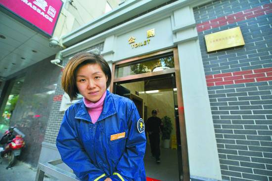 11月20日,曹锦在公厕保洁岗位上工作。当日,她被评为上海市容环卫系统十大“最美保洁员”。