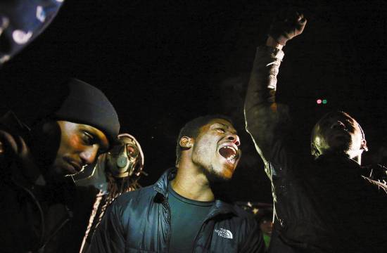 11月25日,抗议者在美国密苏里州弗格森警察局外参加抗议活动。