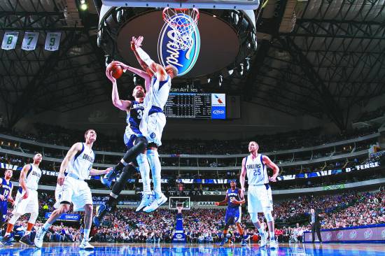 1月28日,NBA常规赛,灰熊队以109∶90大胜小牛队。图为双方球员在篮下争抢。
