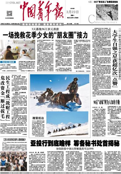 1. 凡本网注明"来源:中青在线或中国青年报"的所有作品,版权均属于中青在线或中国青年报社,未经本网授权,不得转载、摘编或以其它方式使用上述作品。