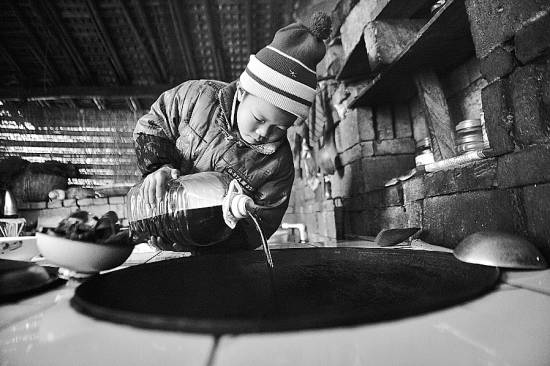 “家庭贫困必然限制每一项支出,‘事实孤儿’的生活费用窘迫得令人吃惊。”在这些“事实孤儿”家庭中,67.6%的初中生月生活费用低于100元;82.4%的家庭蔬菜来源于自种,品种有限且季节性强,很难保证儿童生长发育所需的必须营养;每天有水果吃的仅占2.7%;17.7%表示“偶尔吃不饱”或“经常吃不饱”。