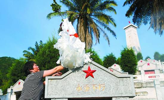 4月3日,滇越铁路河口附近的一处烈士陵园,家属祭奠亲人。